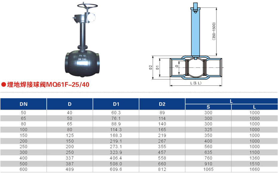 MQ361F-PN16-DN300埋地式全焊接球閥